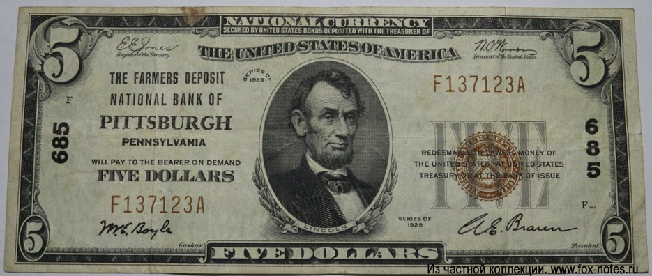 333333-Farmers Deposit National Bank of Pittsburgh 5 Dollars 1929-444444