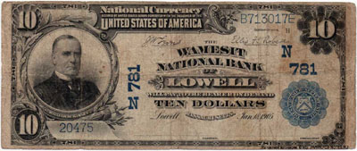 333333-The Wamesit National Bank of Lowell 10 dollars 1902-444444