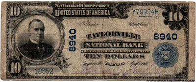 333333-Taylorville National Bank 10 dollars 1902-444444