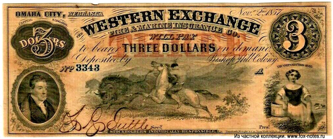 333333-Western Exchange Fire & Marine Insurance Co 5 dollars 1857