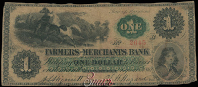 333333-Farmers and Merchants Bank 1 $1862/BANKNOTES SShA-444444Notes: