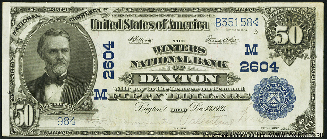 Winters National Bank of Dayton, Ohio. SERIES OF 1902. 50 Dollars 1921.